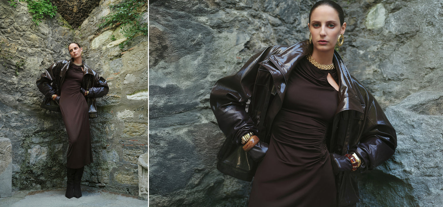 An ode to femininity, where sculpted silhouettes and tactile fabrics define the essence of contemporary sophistication. Each dress embodies quiet strength and understated allure — designed to move effortlessly through every moment.