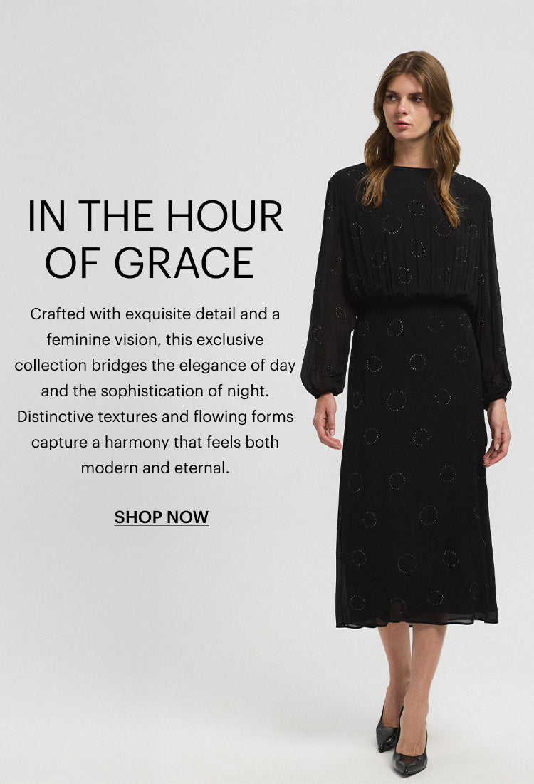 An ode to femininity, where sculpted silhouettes and tactile fabrics define the essence of contemporary sophistication. Each dress embodies quiet strength and understated allure — designed to move effortlessly through every moment.