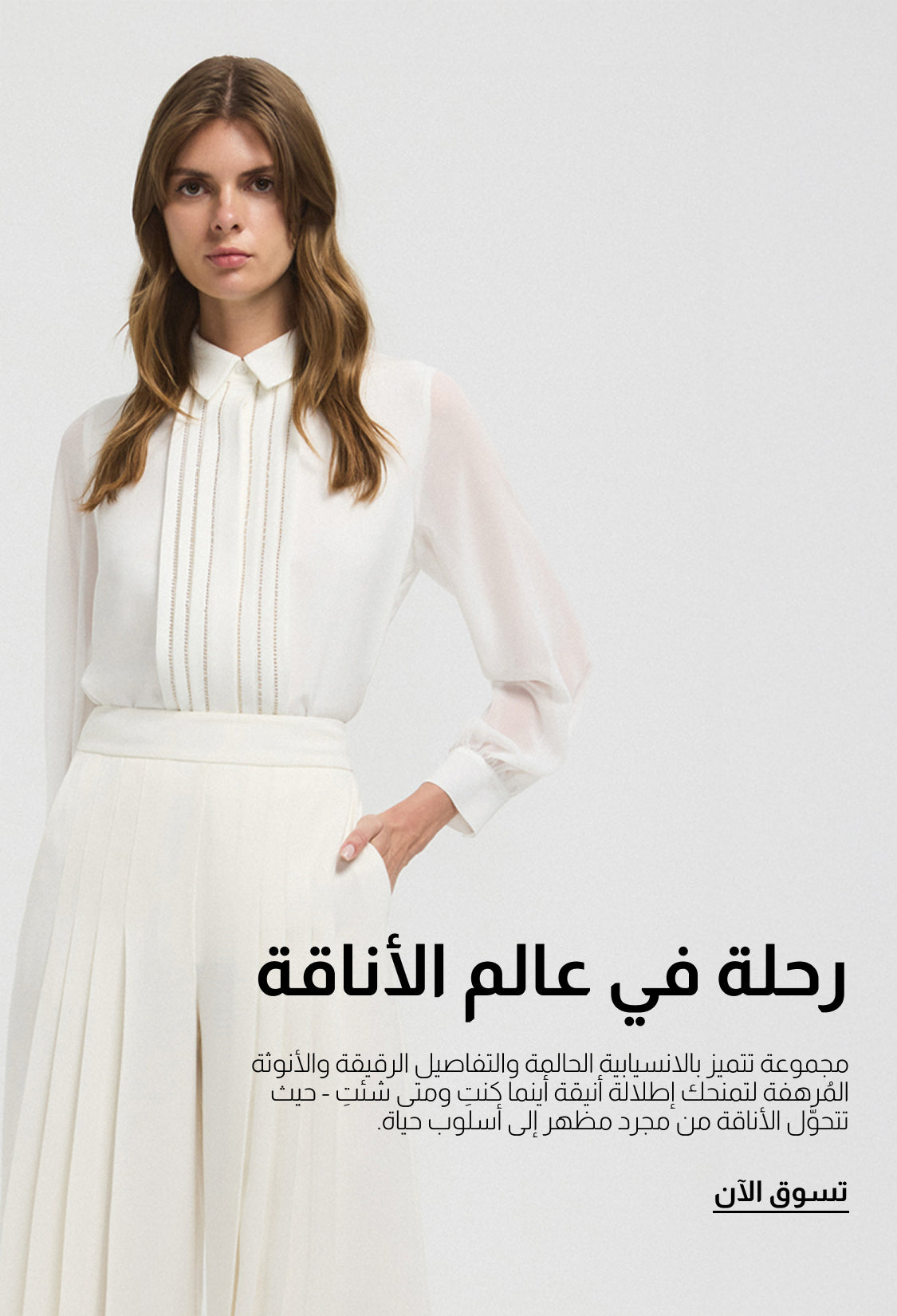 أساسيات خزانتك بطابع جديد لإطلالات متكاملة، حيث تعكس كل إطلالة دقة التصميم بدءًا من الطبعات المميزة ووصولاً إلى الخطوط المتناغمة لتحوِّل روتينك اليومي إلى تعبير راقٍ عن الأناقة والذوق الرفيع.