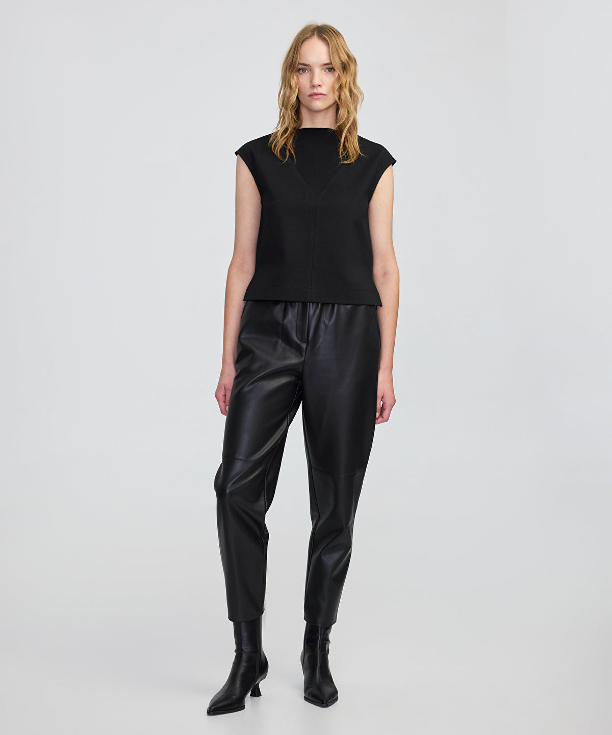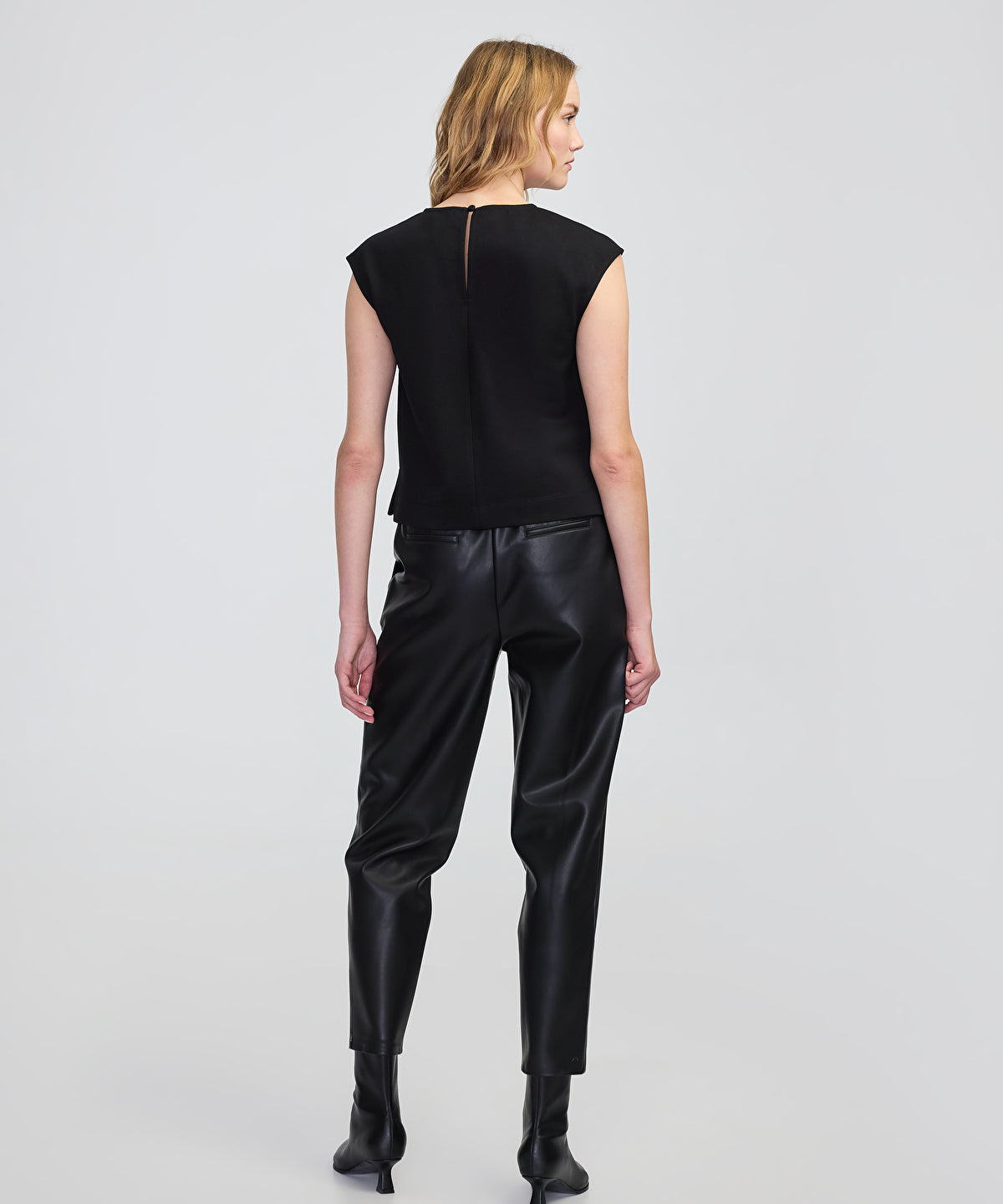 قميص بتأثير الجلد بياقة متباينة